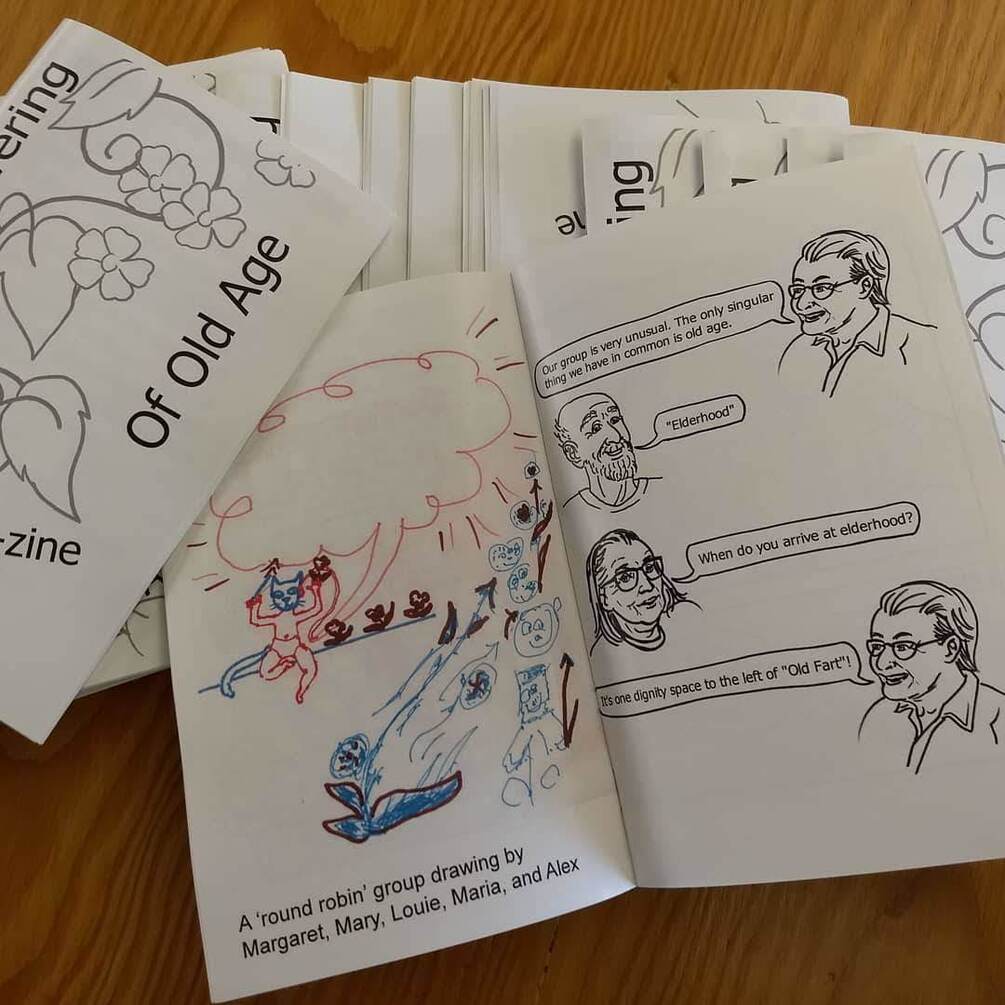 The Flowering of Old Age: An Elder-Zine: This zine was created by a group of elders in northern California through a series of art and storytelling workshops led by Alex L Combs, a local artist. The creation of the zine was intended to help foster connections between the collaborators and uplift the voices of elderhood.