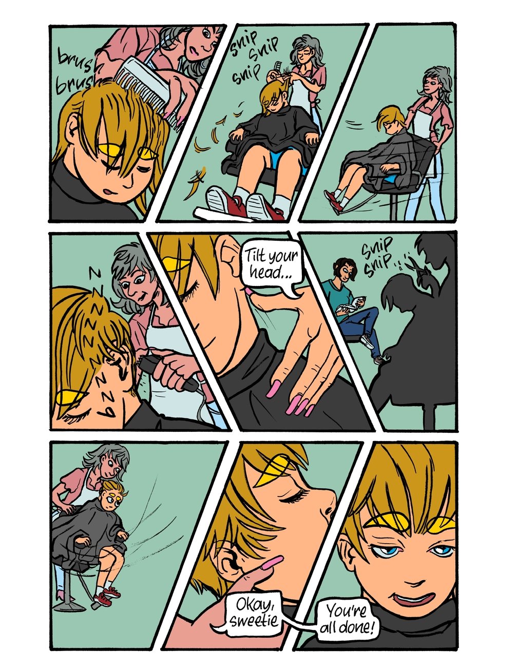 Magical Boys is a slice-of-life style comic that follows Caroline, a closeted trans teen obsessed with drawing bishounen, who bonds with kindred spirit, Sam. As the story begins, Caroline is drawing a pretty vampire boy in their sketchbook at work while waiting for closing time and "nonchalantly" checking out the cute new gender-ambiguous employee Sam, who just started working at the ice cream stand next door...